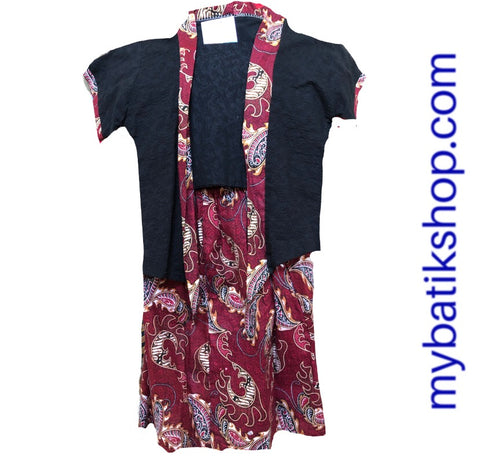 Fun modern kebaya kutubaru with a matching skirt for your precious girl. Elastic waist.